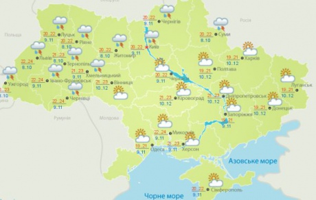 В Киеве - ночью без существенных осадков, слабый туман; днем кратковременный дождь, местами гроза; температура ночью 10-12°, днем 20-22°.