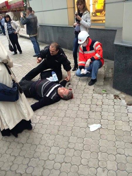 После нападения сепаратистов на мирный митинг в Донецке пострадали как минимум 15 человек. Люди возмущены бездействием милиции.