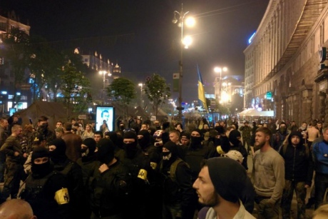 Вместе с тем "Интерфакс-Украина" сообщает о том, что факельное шествие было посвящено героям "Небесной сотни". Во время столкновения применялись взрывные пакеты и петарды.