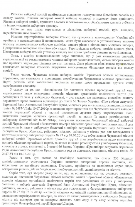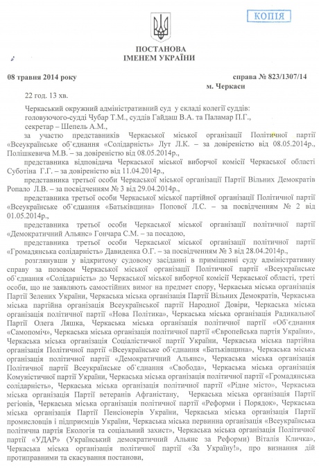 Черкасский окружной админсуд отменил решение городской территориальной избирательной комиссии от 7 мая об утверждении бюллетеней для выборов депутатов горсовета.