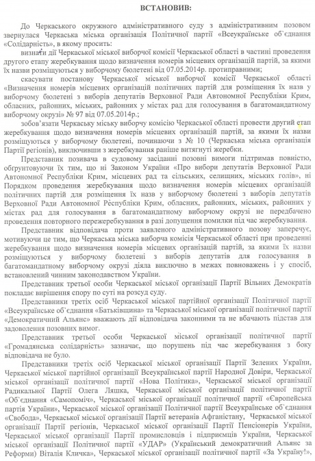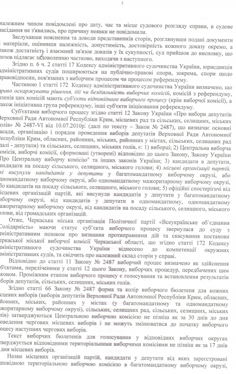 Черкасское областное отделение "Солидарности" обжаловало в админсуде решение горизбиркома о форме бюллетени на выборы горсовета из-за нарушений при определении очередности партий в списке.