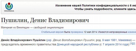 Пушилин в русскоязычную Википедию уже внесен как "глава временного правительства Донецкой народной республики".