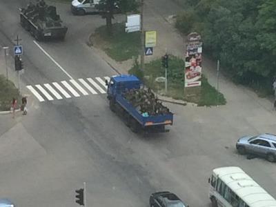 "По Панфилова в сторону Артема поднималась колонна бронетехники и живой силы. В составе колонны три грузовика, три автобуса с кавказцами и оружием. Также в колонне есть легковые автомобили и микроавтобусы, всего 15 машин", - сообщает читатель.
