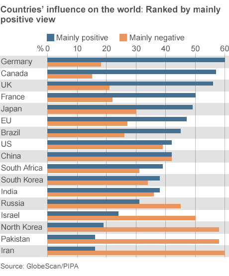 Об этом свидетельствуют данные опроса GlobeScan, проведенном в 24 странах мира, передает Всемирная служба ВВС.