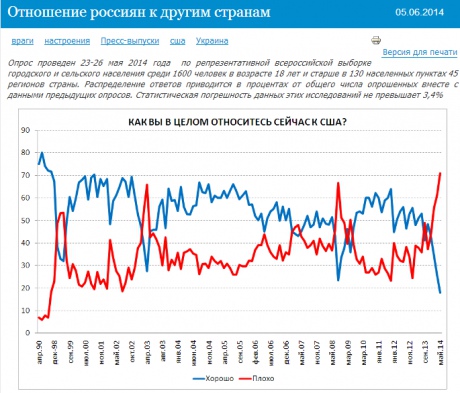 При этом в начале 90-х плохо к США относились только 7% жителей России.