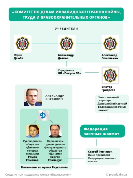 Совет донецкого областного общества "Динамо" в 2013 году возглавлял экс-первый заместитель министра внутренних дел Украины Виктор Борисович Дубовик.