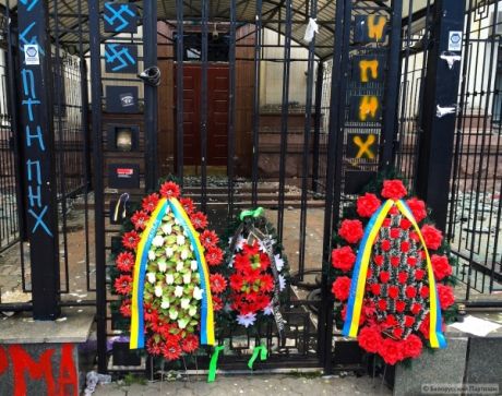 | Венки возле посольства РФ в Киеве. Фото Белорусский партизан |