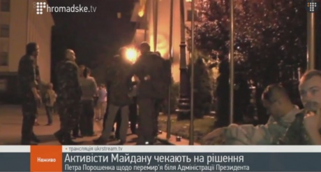 Вместе с тем в эфире Hromadske TV отметили, что активисты требовали прямой трансляции обращения Порошенко на Майдан Независимости, где до сих пор стоит Евромайдан.