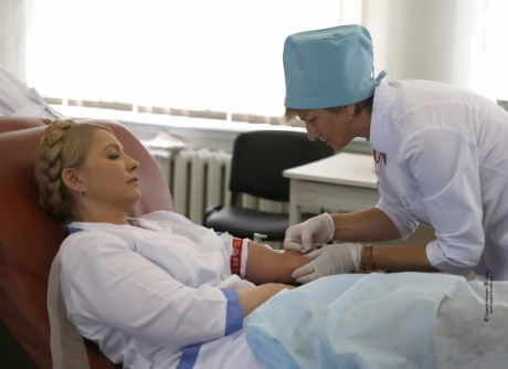 Народные депутаты из фракции "Батькивщина" во главе с Юлией Тимошенко сдали кровь для нужд украинской армии и бойцов, участвующих в антитеррористической операции на Востоке Украины.