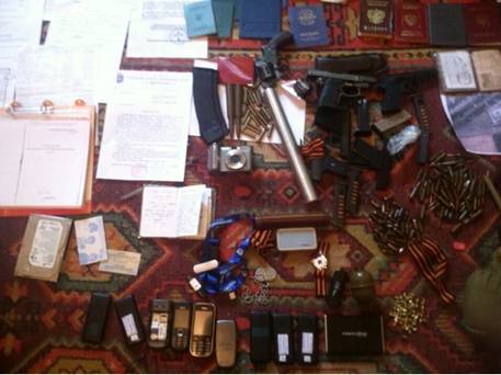 Во время обыска у задержанных изъято напечатаны в России методические рекомендации по разведывательной подготовки, детальные топографические карты с пометками дислокации военных и стратегических объектов области, данные о системах защиты, руководителей.