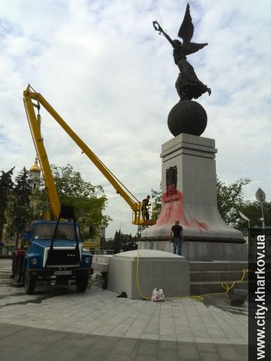 | В Харькове облили краской памятник Независимости Украины (фото с сайта city.kharkov.ua) |