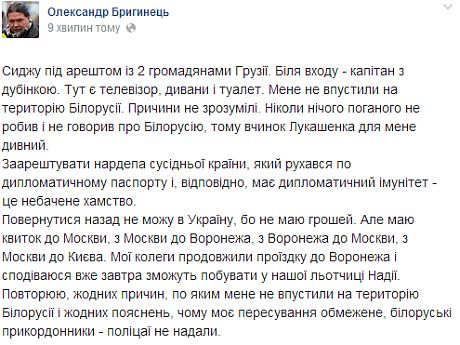 Бригинца, который в составе делегации ехал к Савченко, задержали в Минске