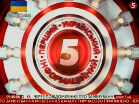 "5 канал" снова приостановил вещание из-за сообщения о якобы заминировании офиса в Киеве.