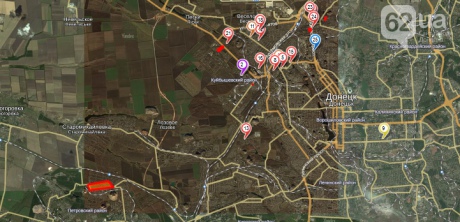 | Карта обстрелов в Донецке с сайта 62.ua |