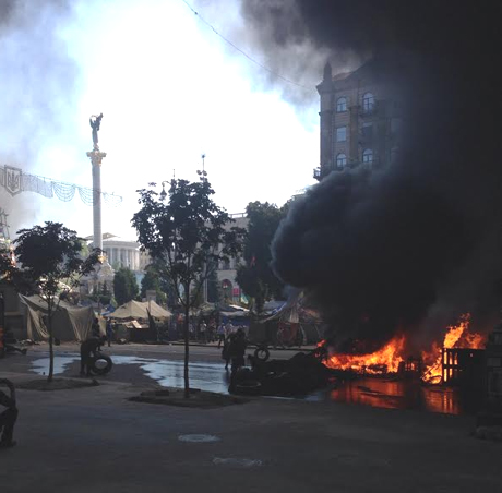 Горят баррикады напротив Дома профсоюзов и покрышки со стороны площади Европейской. Работают пожарные расчеты.