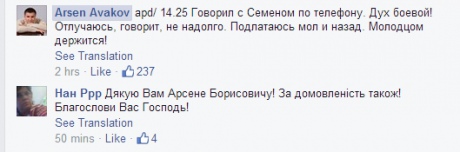 Как пишет Аваков на своей странице в Facebook, у Семенченко – боевой дух.