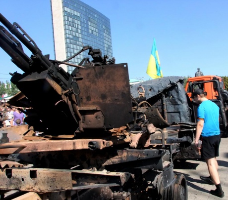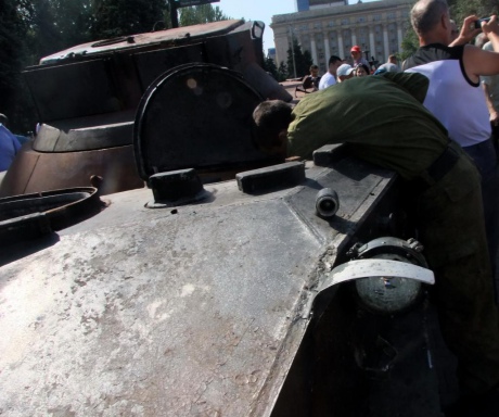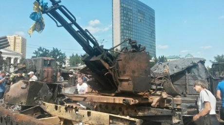 На площади Ленина боевики выставили военную технику, которая, по их словам, принадлежала украинской армии. Таким образом боевики решили продемонстрировать свое превосходство в День Независимости Украины.