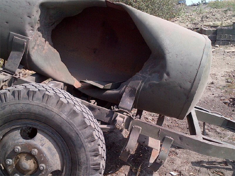 | После минометного обстрела. Бочка из-под воды. Фото Владимира Кухаря |