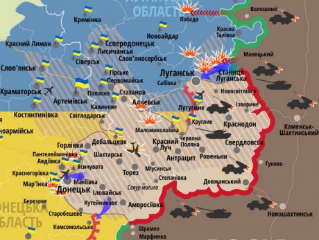 | Ситуация на востоке Украины по состоянию на 12:00 3 сентября. Карта СНБО |
