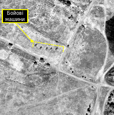 | Вероятно, замечена БРДМ-2с, разведывательно-дозорная машина. Дата изображения - 27 августа. DigitalGlobe |