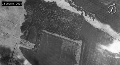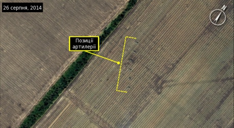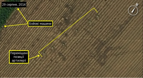 "В период с 26 по 29 августа 2014 артиллерия была передислоцирована на запад и приведена на позиции, находящиеся в пределах Украины. 29 августа на изображены спутника явилось то, что очень напоминает многочисленные единицы военной техники, расположенные на местности вдоль линии деревьев и на соседнем поле ", - говорится в отчете.