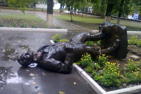 24 сентября 2014 в 10-20 в милицию поступило сообщение о том, что по улице Артема с постамента сброшено памятник "товарищ Артему".