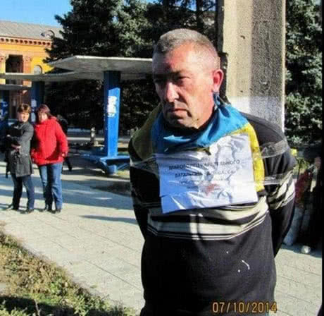 В Зугрэсе Донецкой области боевики привязали к столбу мужчину.