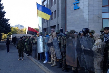 Около 500 их бойцов вместе с милицией окружили здание областной администрации, чтобы предотвратить провокации.