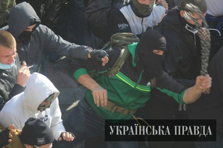 После этого протестующие начали атаковать милиционеров дымовыми шашками и дубинками. Кроме того, они забрасывали и обстреливали здание Рады, повредив при этом стекла.