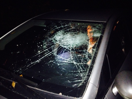 Двое нападавших разбили лобовое стекло автомобиля и, угрожая оружием, заставили кандидата и его помощника выйти из машины.