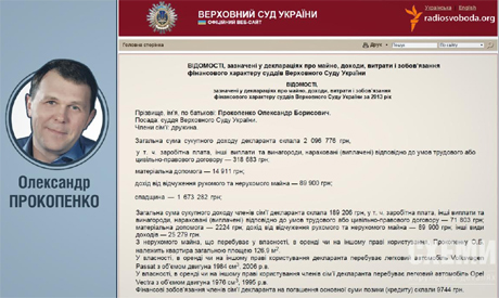 Его коллега – судья Александр Прокопенко задекларировал 2 096 776 гривен доходов. Из них зарплата, материальная помощь и продажа имущества - почти 423 с половиной тысячи. Остальное - а это 1 673 282 - достались судьи в наследство.