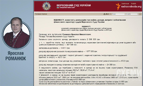 Еще один миллионер – сам глава Верховного суда Ярослав Романюк. За 2013-ый он задекларировал 2 096 303 гривень доходов.
