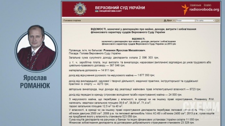 Еще один миллионер - сам председатель Верховного суда Ярослав Романюк. За 2013-й он задекларировал 2 096 303 гривны доходов. Из них зарплата - это 367 тысяч, материальная помощь - почти 15 тысяч.