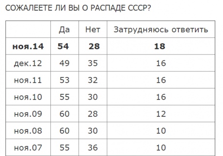 Россияне жалеют за Союзом Скриншот с сайта "Левады-центра" |