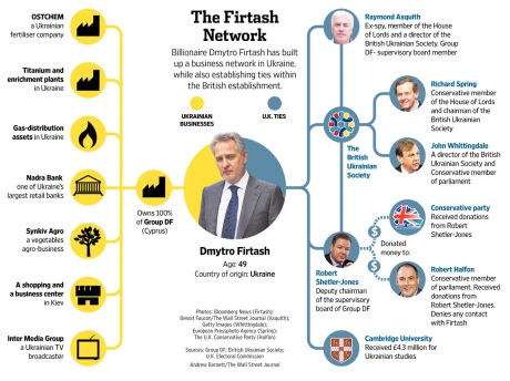 Украинский олигарх Дмитрий Фирташ, против которого в США возбуждено дело, имеет тесные связи среди британских политиков. Именно к нему за консультациями обращался МИД Великобритании в феврале в начале кризиса в Украине.