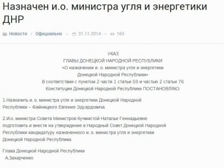 | Принт-скрин с сайта "ДНР" |