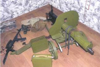 В ходе обыска его квартиры обнаружен тайник с большим количеством оружия: два карабина "Вулкан" и "Сайга" с патронами к ним, пулемет "Максим", огнестрельное оружие различной модификации, ручные гранаты, около 1200 патронов калибра 7,62 мм, сигнальный пистолет с 120-ю зарядами к нему.