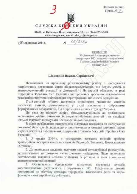 На сепаратистских сайтах распространяется поддельный документ от имени главы Службы безопасности Украины Валентина Наливайченко, адресованный главе Антитеррористического центра Василию Грицаку.