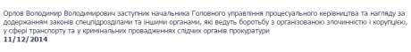 Так, согласно сообщению на сайте ГПУ, 11 декабря Орлов назначен начальником Главного управления процессуального руководства и надзора за соблюдением законов спецподразделениями и другими органами, которые ведут борьбу с организованной преступностью и коррупцией, в сфере транспорта и в уголовных процессах следственных органов