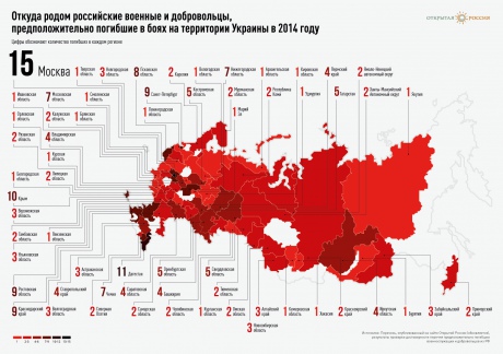 Больше всего погибших россиян из Моксвы. Инфографика "Отрытой Росиси". Для увеличения нажмите на изображении |