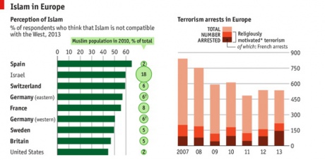 Британцы считают, что мусульмане составляют 21% их населения, в то время как статистика говорит о 5%. Похожей является также ситуация в Италии (4% мусульман против "мнимых" 20%), Германии (6% против 19%), Швеции (5 против 17%) и Испании (2% против 16%).