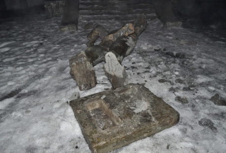 "Действительно памятник был аккуратно снят с постамента, но немного повреждена одна из рук памятника. По предварительным данным, это сделали люди в камуфляже, но мы еще не можем утверждать, кто именно это был", - заявил Мороко.