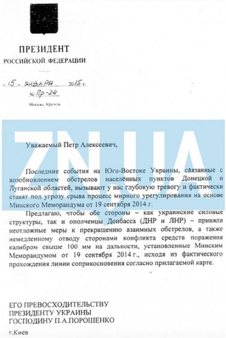 | Письмо Путина к Порошенко от 15 января 2015 года. ZN.ua |