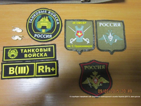 "В ходе проведения личного досмотра у задержанного среди прочего обнаружены нашивки и шевроны Вооруженных сил России", – сказано в сообщении.