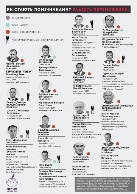 Об этом свидетельствуют результаты исследования доступной на сайте Верховной Рады информации о помощниках народных депутатов VIII созыва, которое провело движение "Честно".
