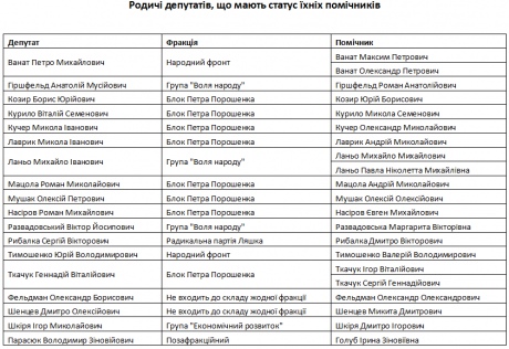 В целом, минимум 19 депутатов заручились помощью своих родственников, которые имеют статус их помощников. 15 депутатов предоставили такой статус проигравшим оппонентам.