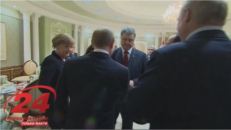 Как передаёт корреспондент агентства "Интерфакс-Украина", сначала президенты Украины Петр Порошенко, Франции Франсуа Олланд и канцлер Германии Ангела Меркель проводили трехсторонние переговоры, однако позже к ним присоединился президент РФ Владимир Путин.