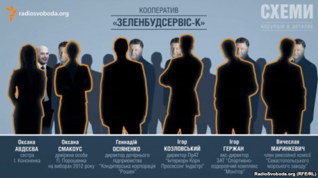 Первоначально оба земельных участка общей площадью 1,10 гектара решением Киевсовета были бесплатно переданы обслуживающему кооперативу "Зеленбудсервис-К", среди членов которого была сестра Кононенко Оксана Авдеева, доверенное лицо Порошенко на выборах 2012 года Оксана Смакоус и лица, связанные с бизнесом Порошенко и Кононенко.