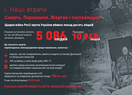 По состоянию на начало февраля, за время российской агрессии погибло более 5 000 человек, ранено почти 11 000 человек. Реальные цифры могут быть значительно больше, подчеркнул Лубкивский.