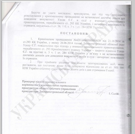 | Последняя из десяти страниц постановления о закрытии уголовного производства против Удода. Кликните для полного размера |